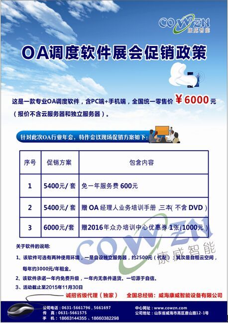 附:OA調(diào)度軟件大會(huì)促銷政策(截止2015年11月30日)